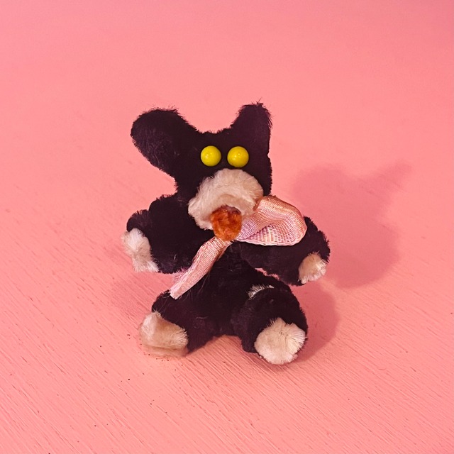 のらくろみたいな動物のモール人形 目は黄色のビーズのようなパーツがついています used 経年感多少のヨゴレあり 高さ5cm