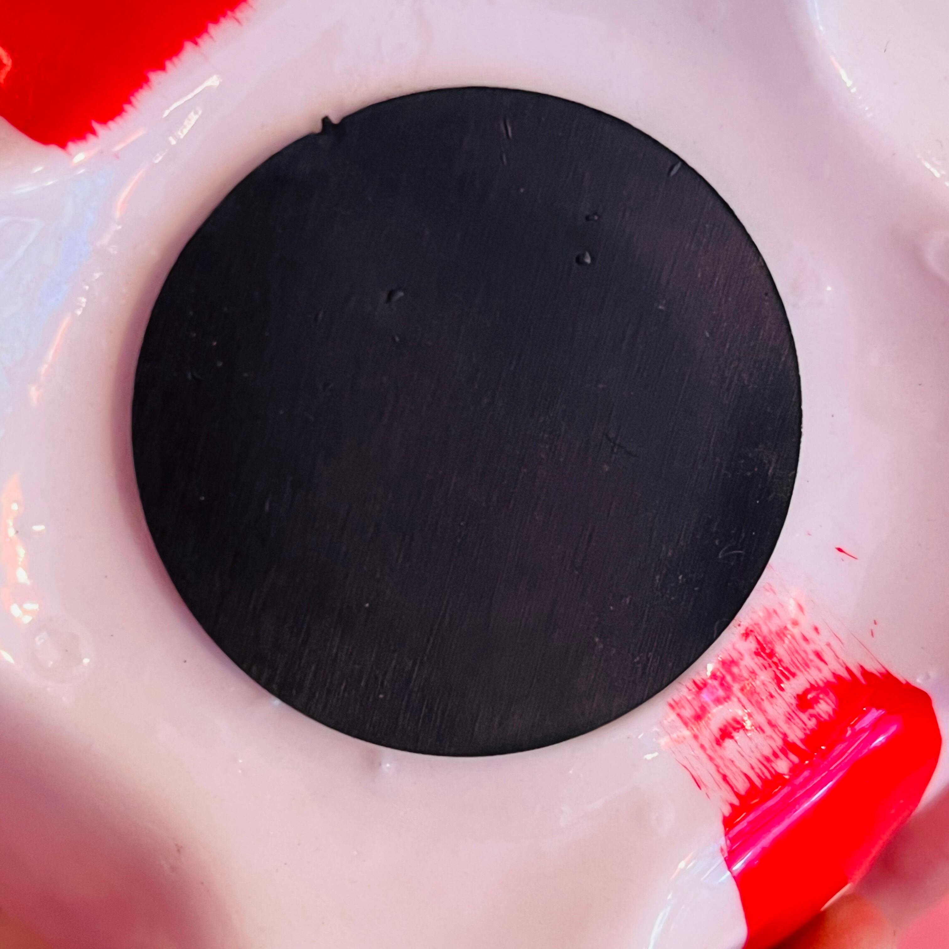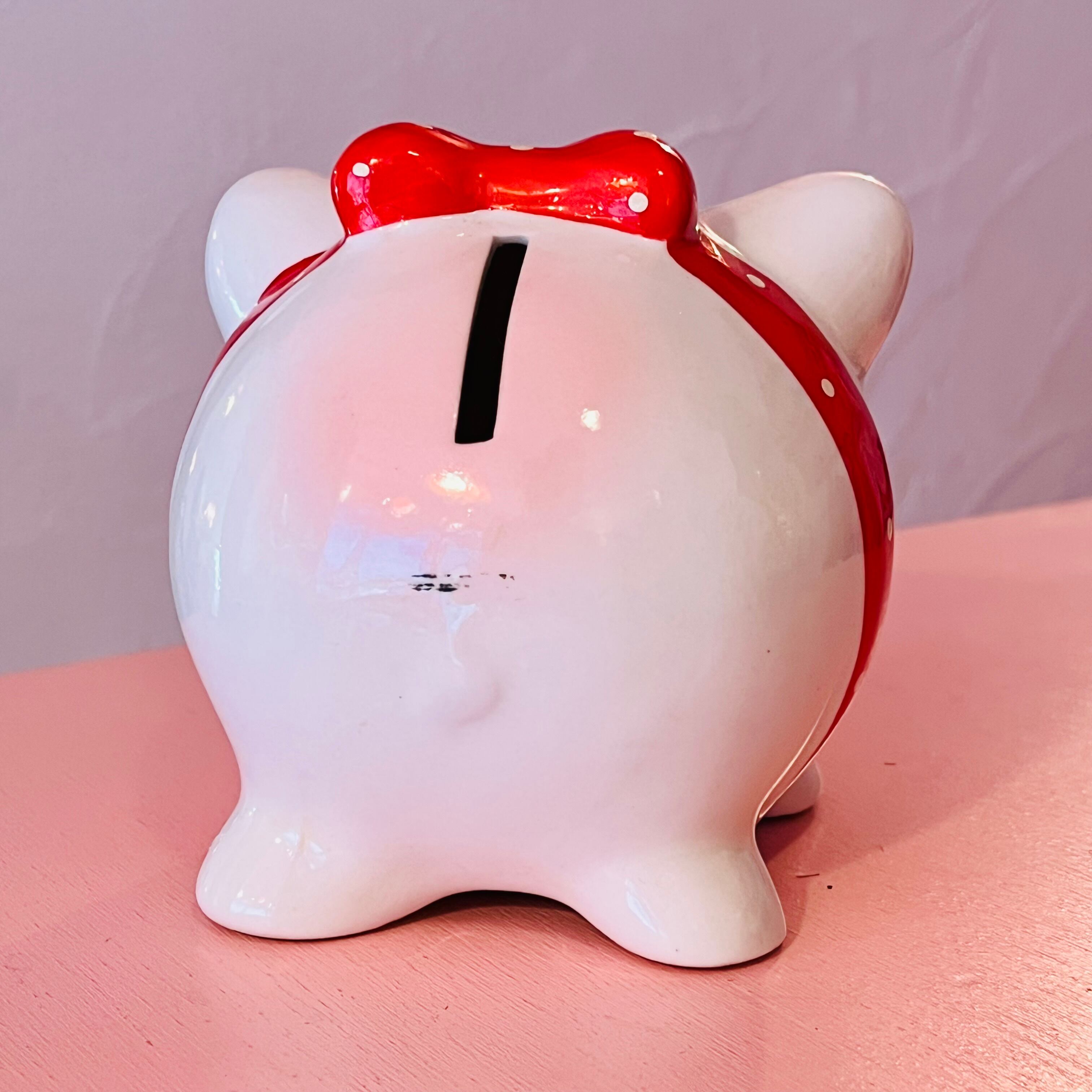 お顔が人間ぽいリボン付きのブタさん貯金箱。