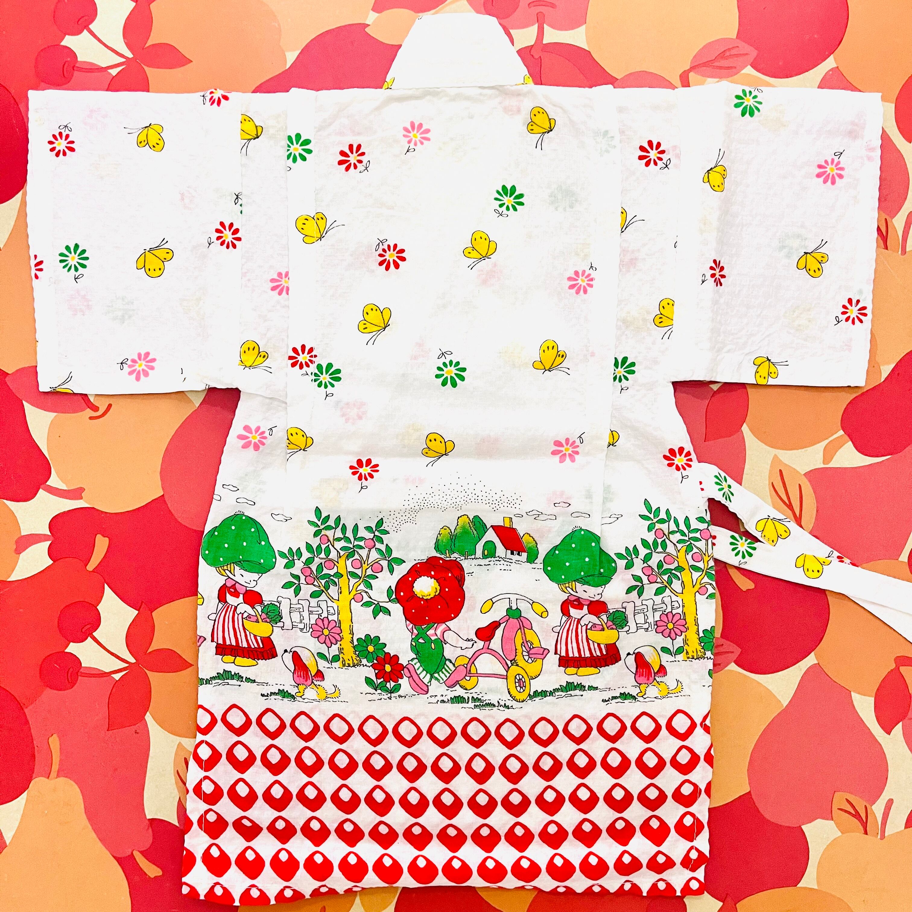 女の子のポップなデザインが可愛いこども用甚兵衛です。