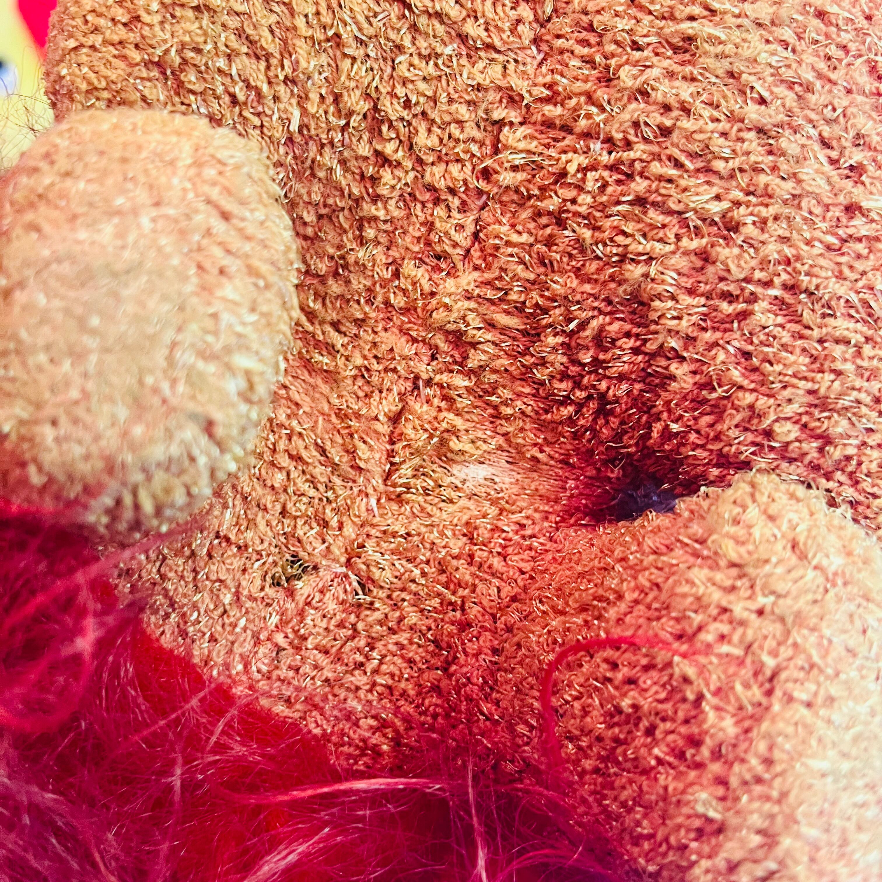 真っ赤な長毛としっぽがライオンみたいなプードルのぬいぐるみ