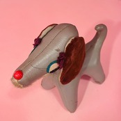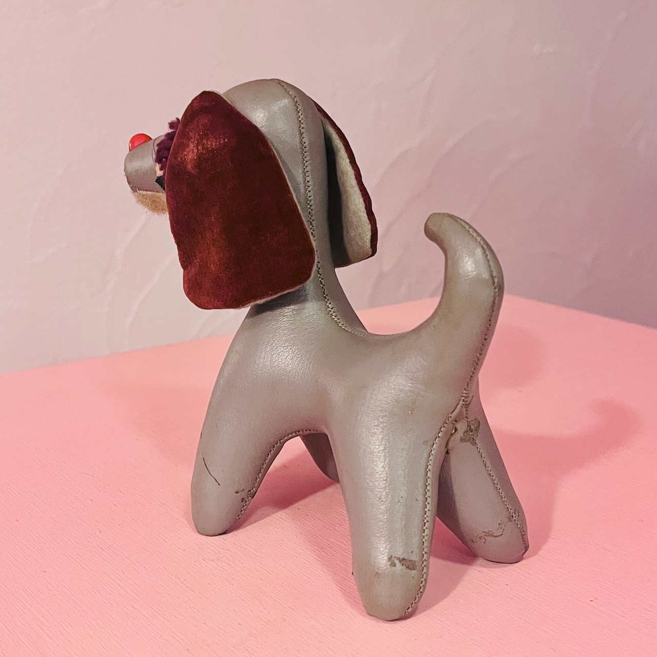 レザーの犬ぬいぐるみ