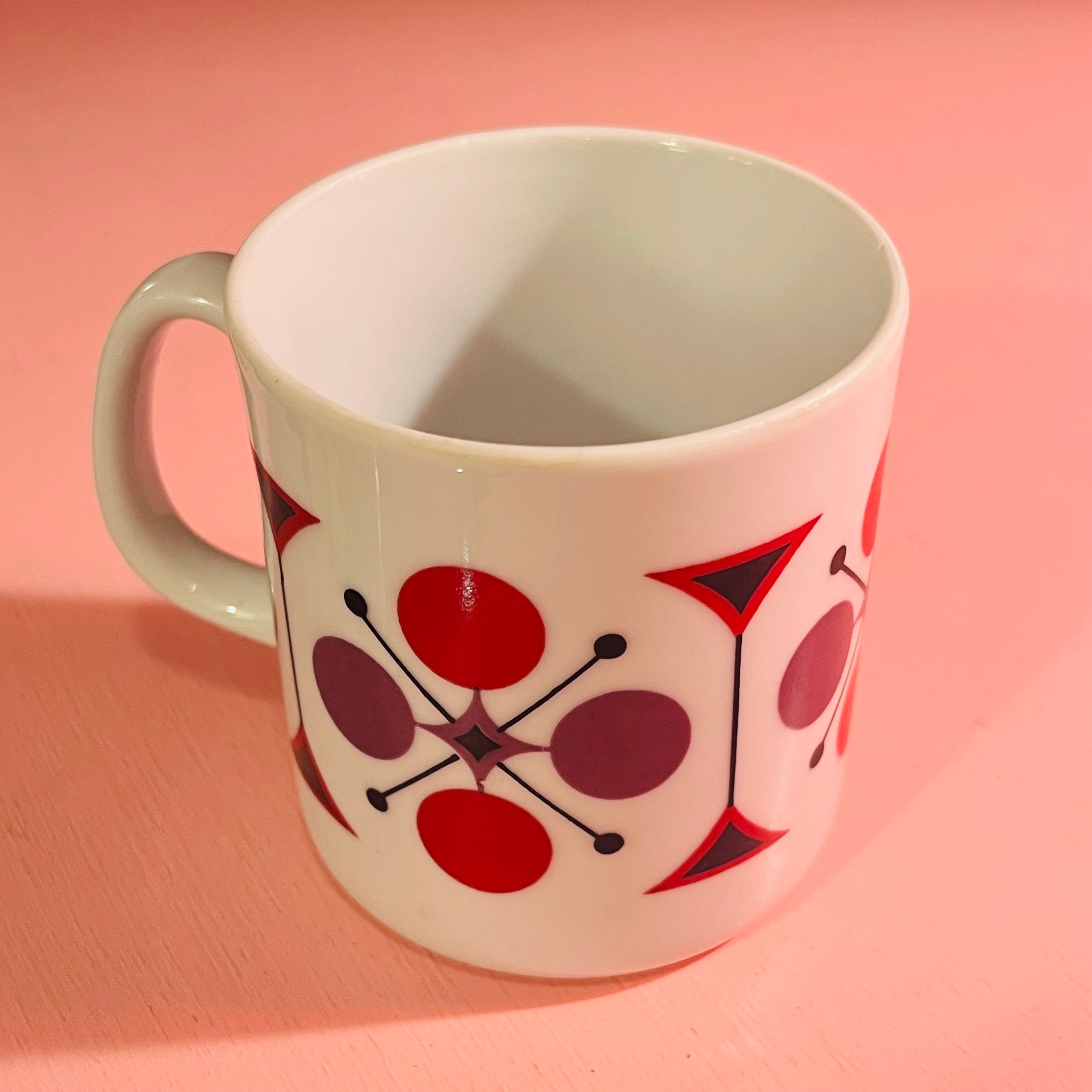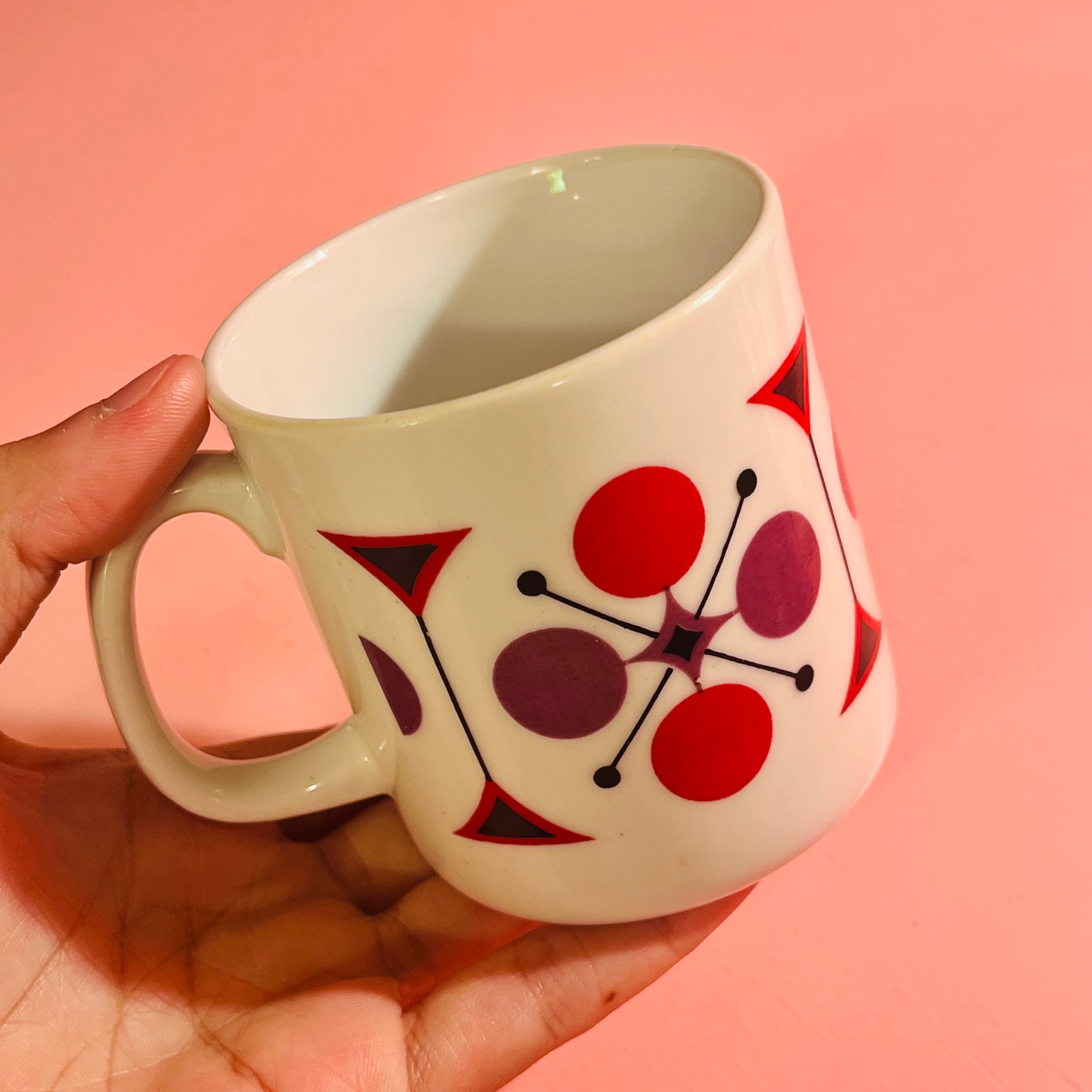 赤、黒、くすみパープルの幾何学模様がモダンな雰囲気です