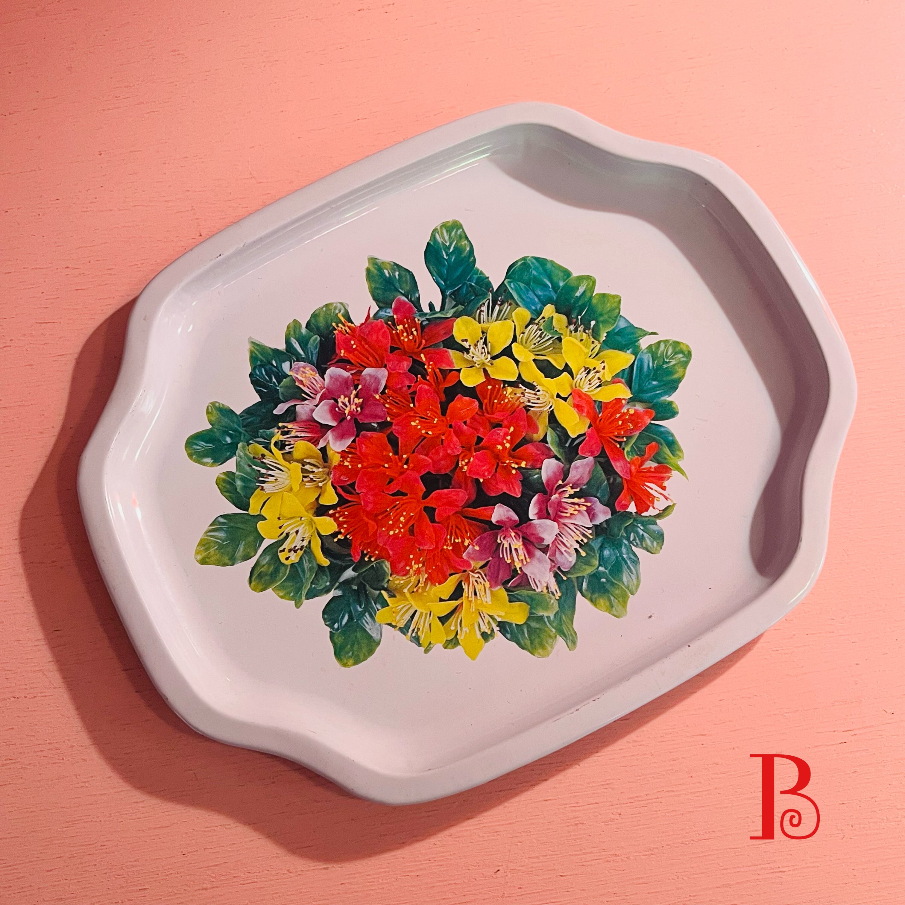 フラワーフォトプリントが鮮やかなブリキのトレイ