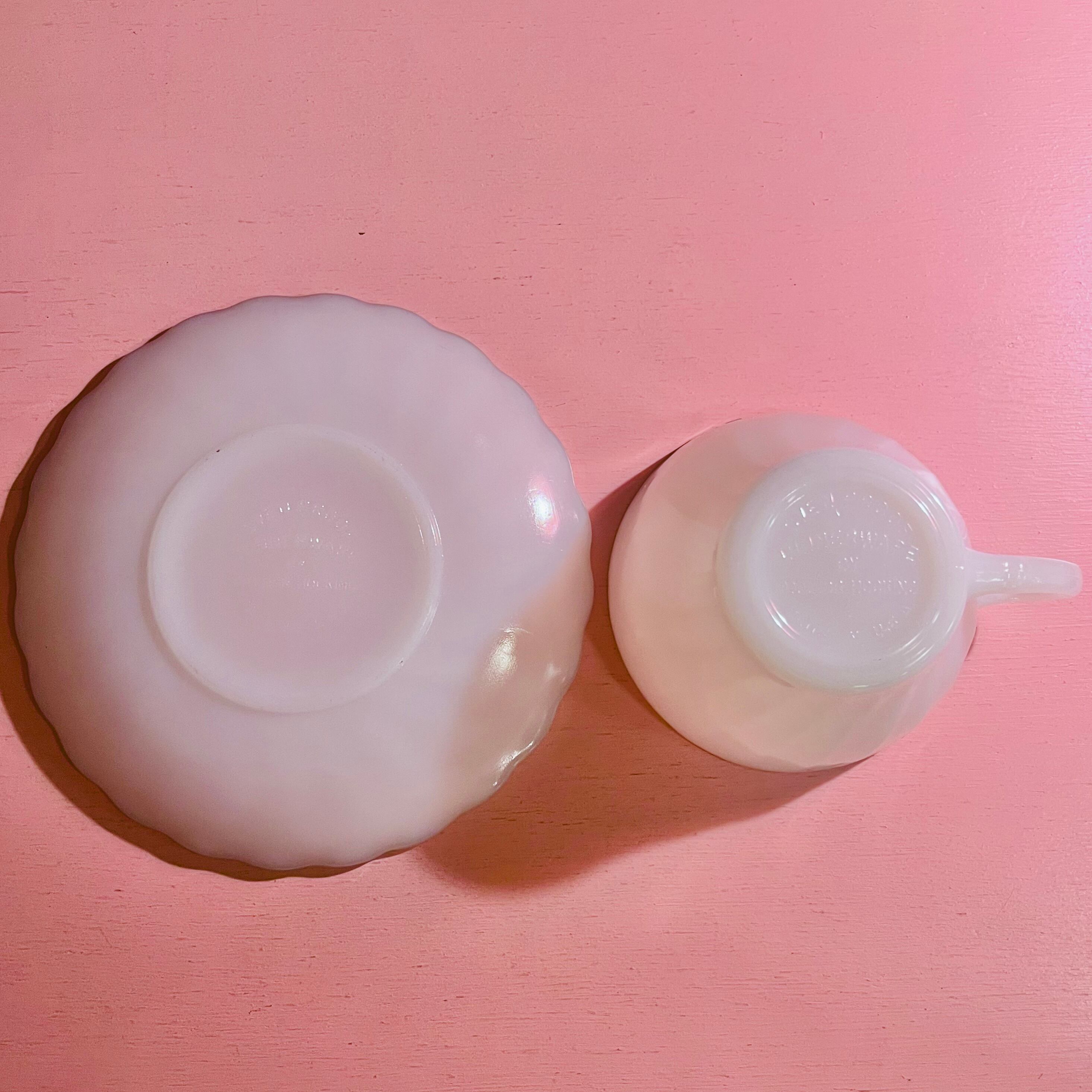 ファイヤーキングのミルクガラス製カップアンドソーサー