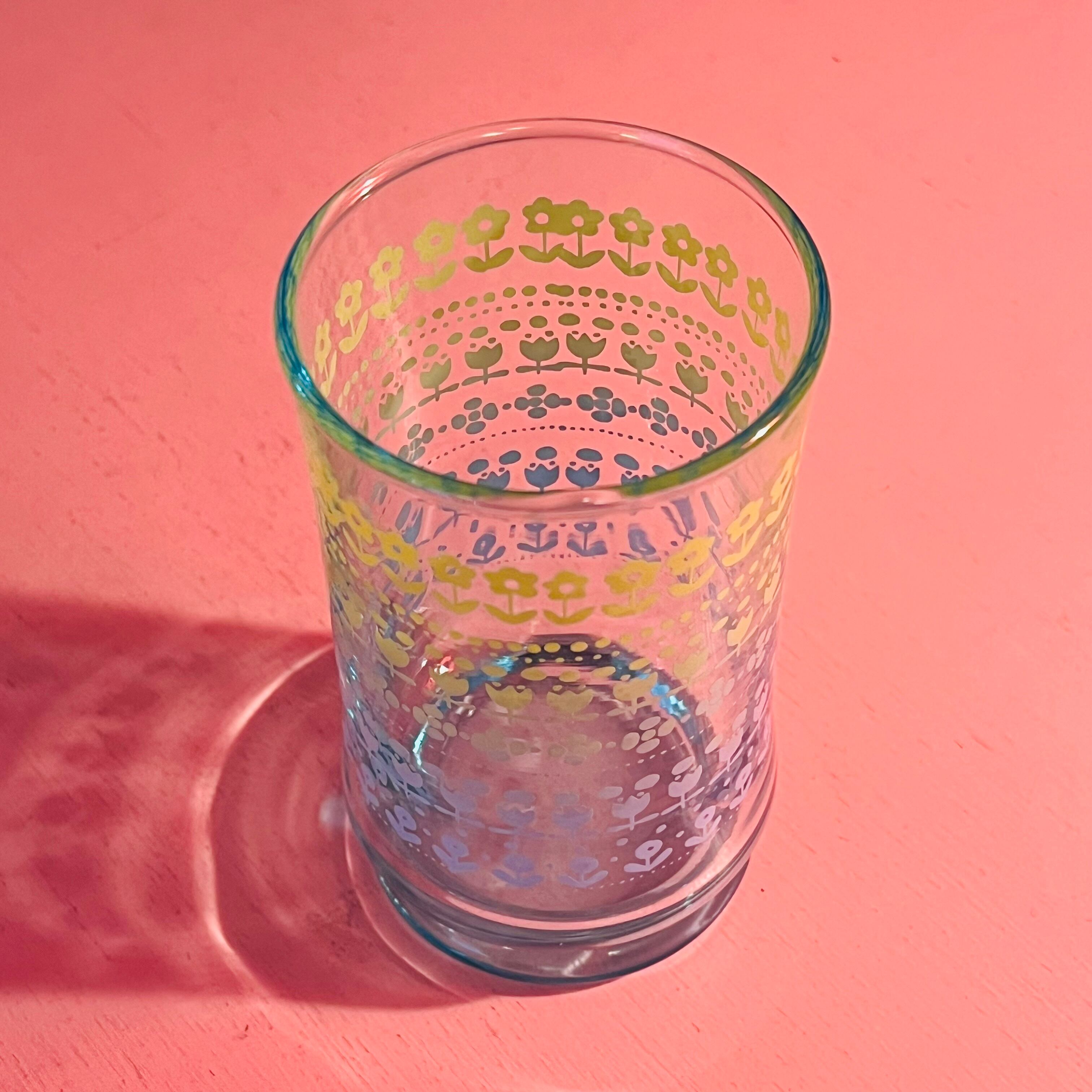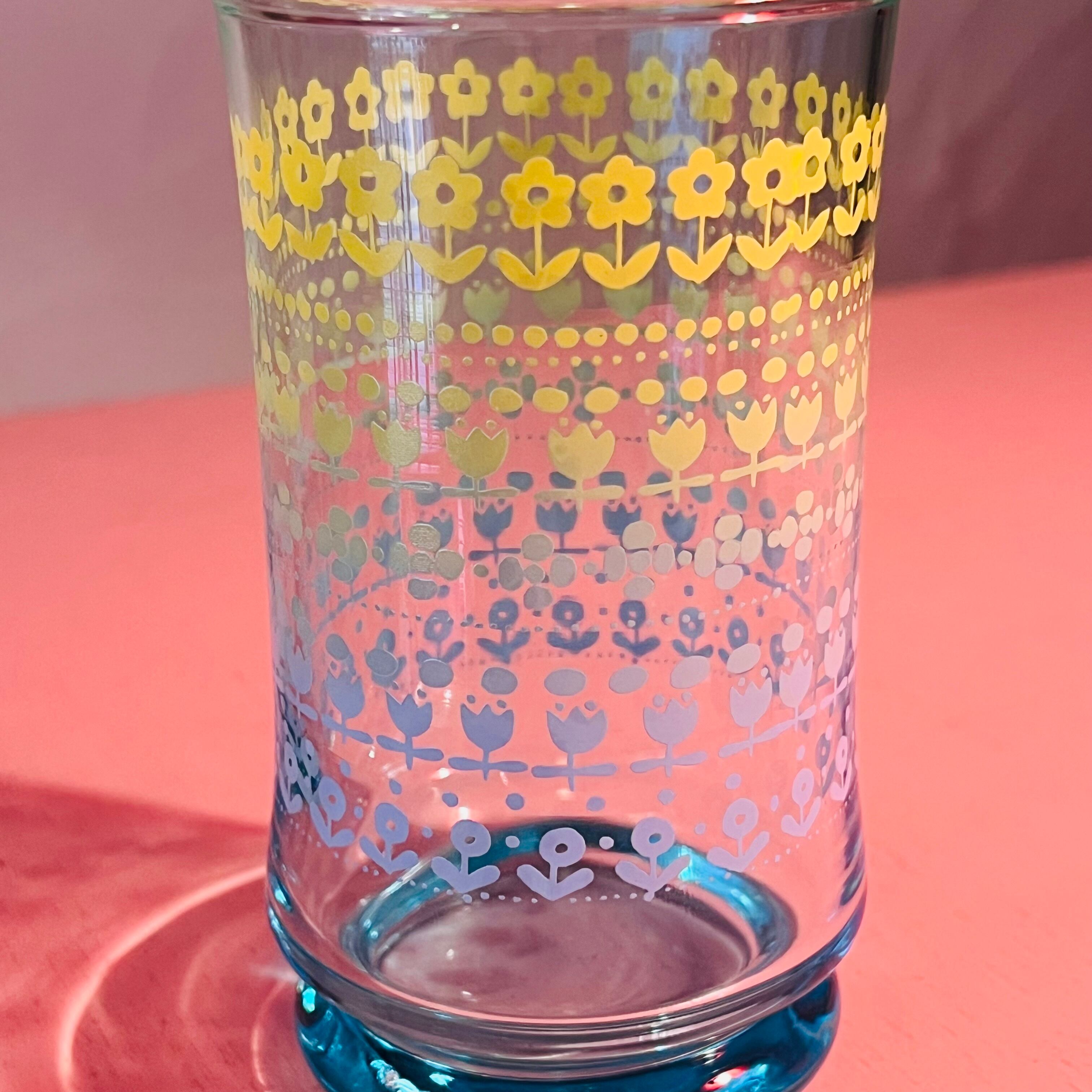 淡い水色にグラデーションの花柄がとても可愛いグラス✨