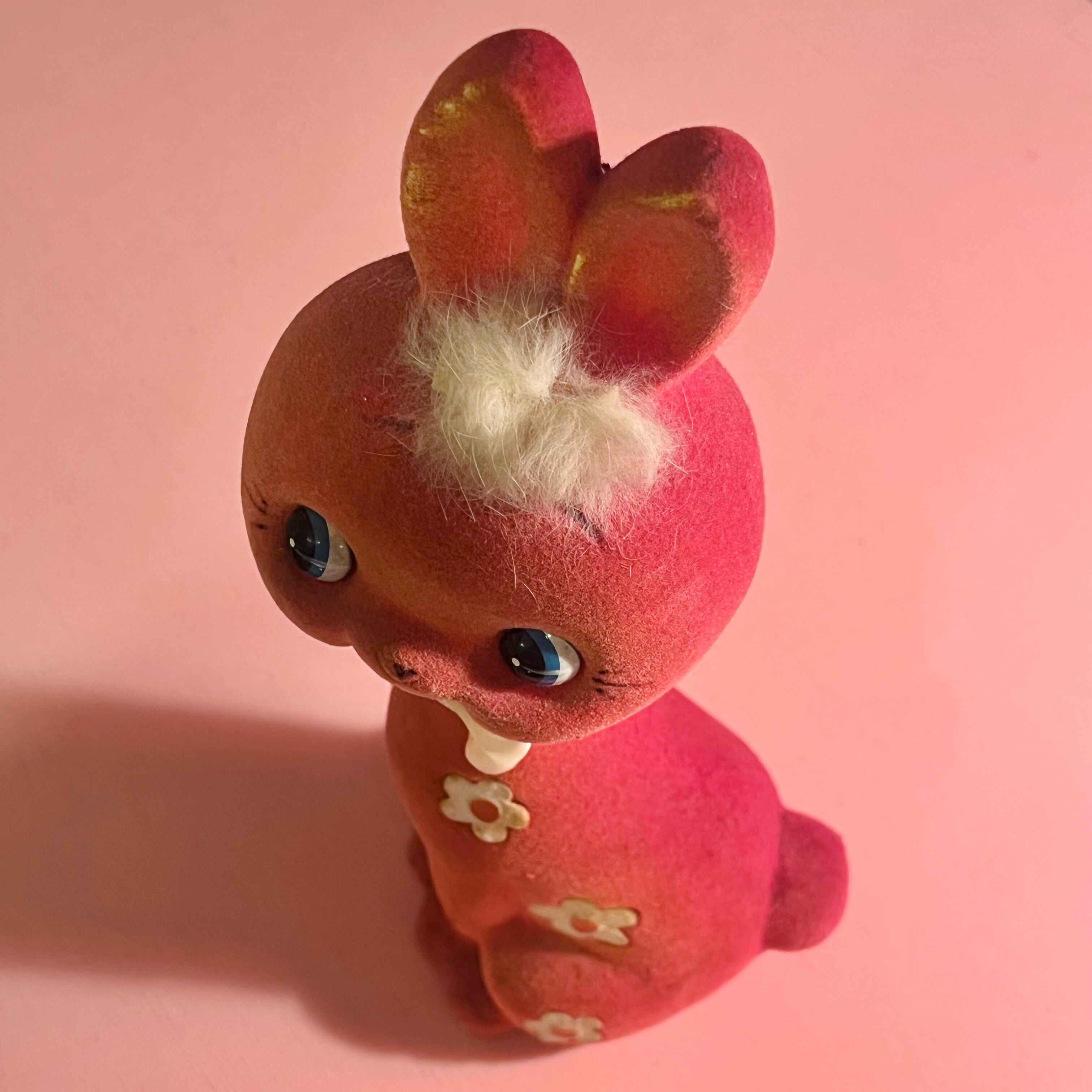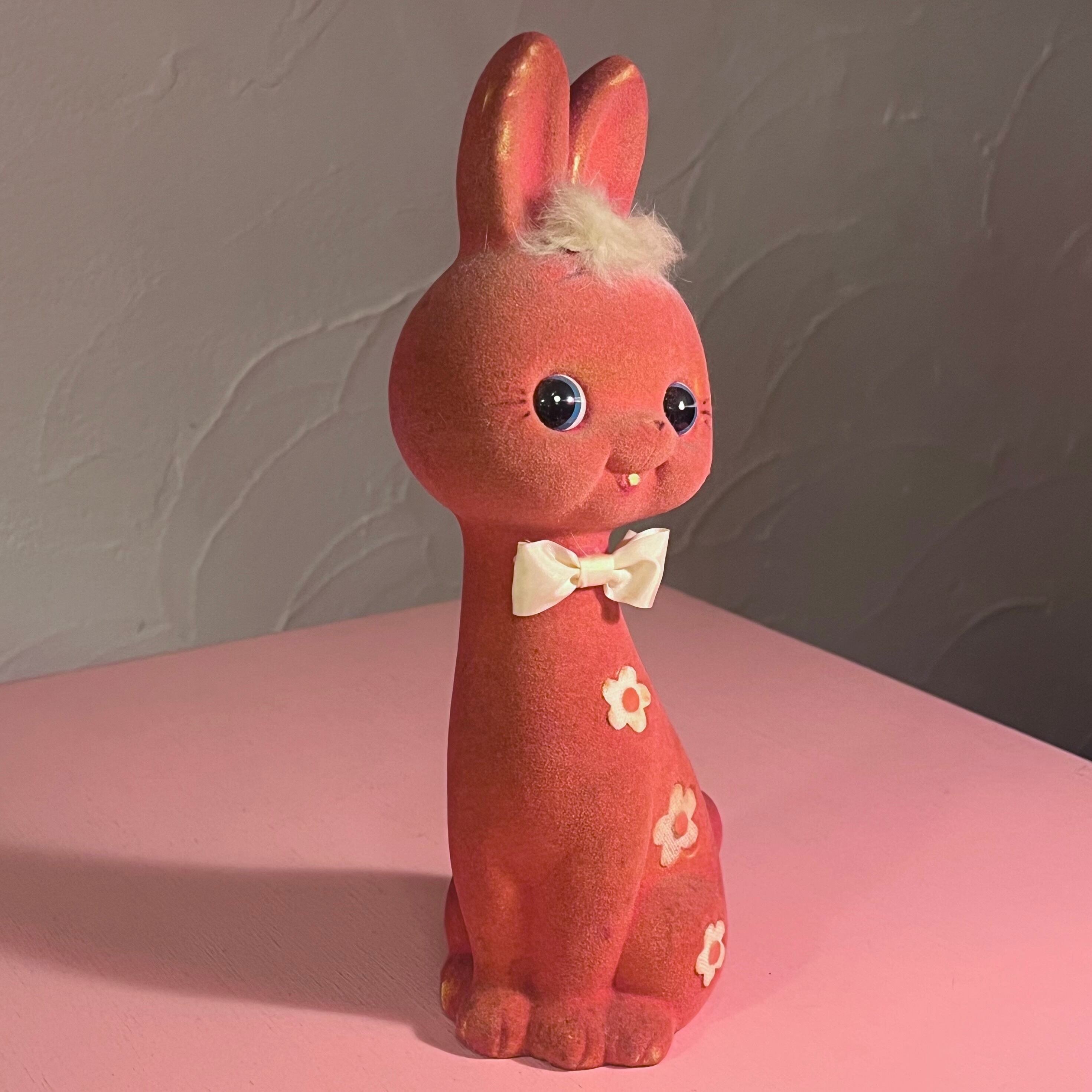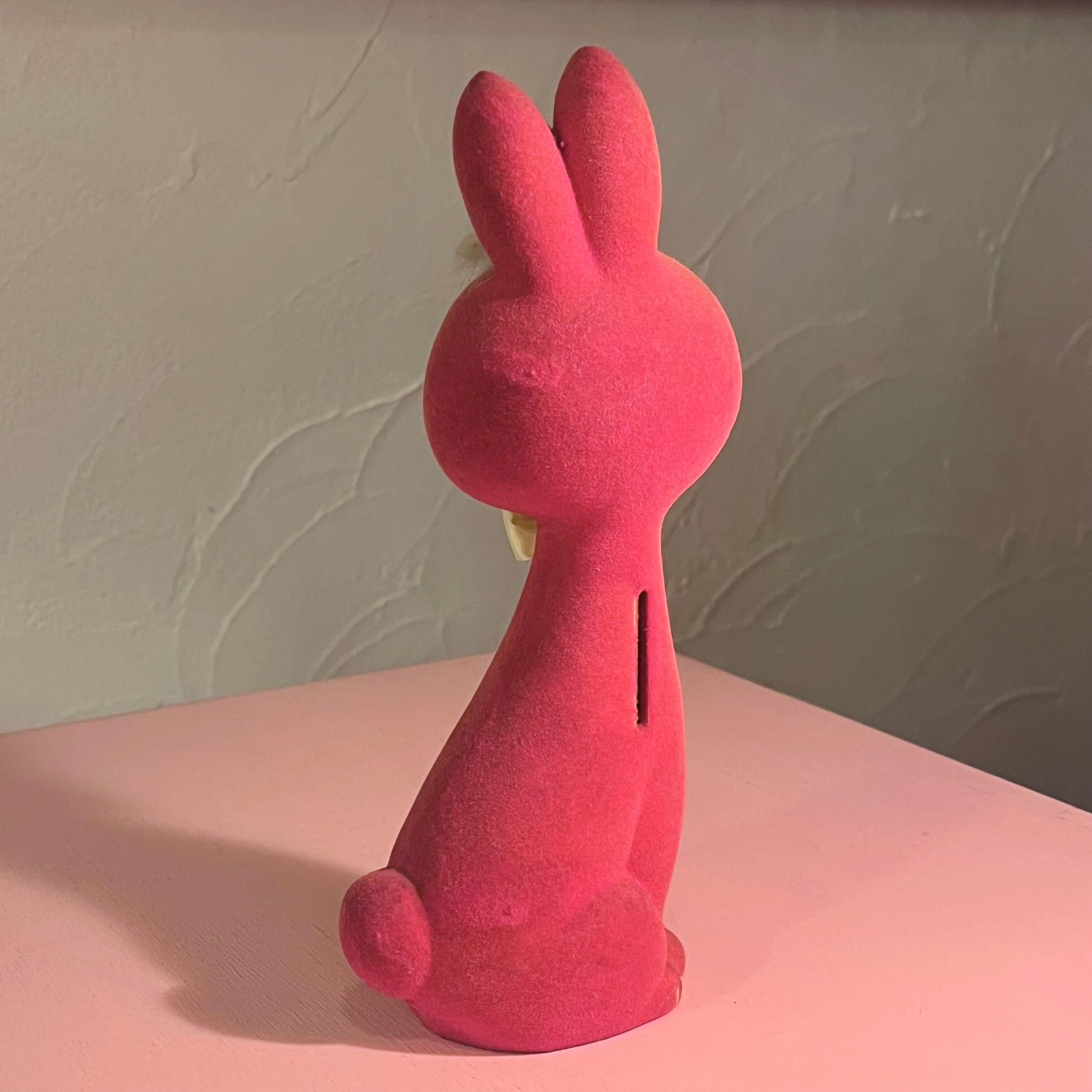 ピンクのフロッキー素材うさぎさん貯金箱