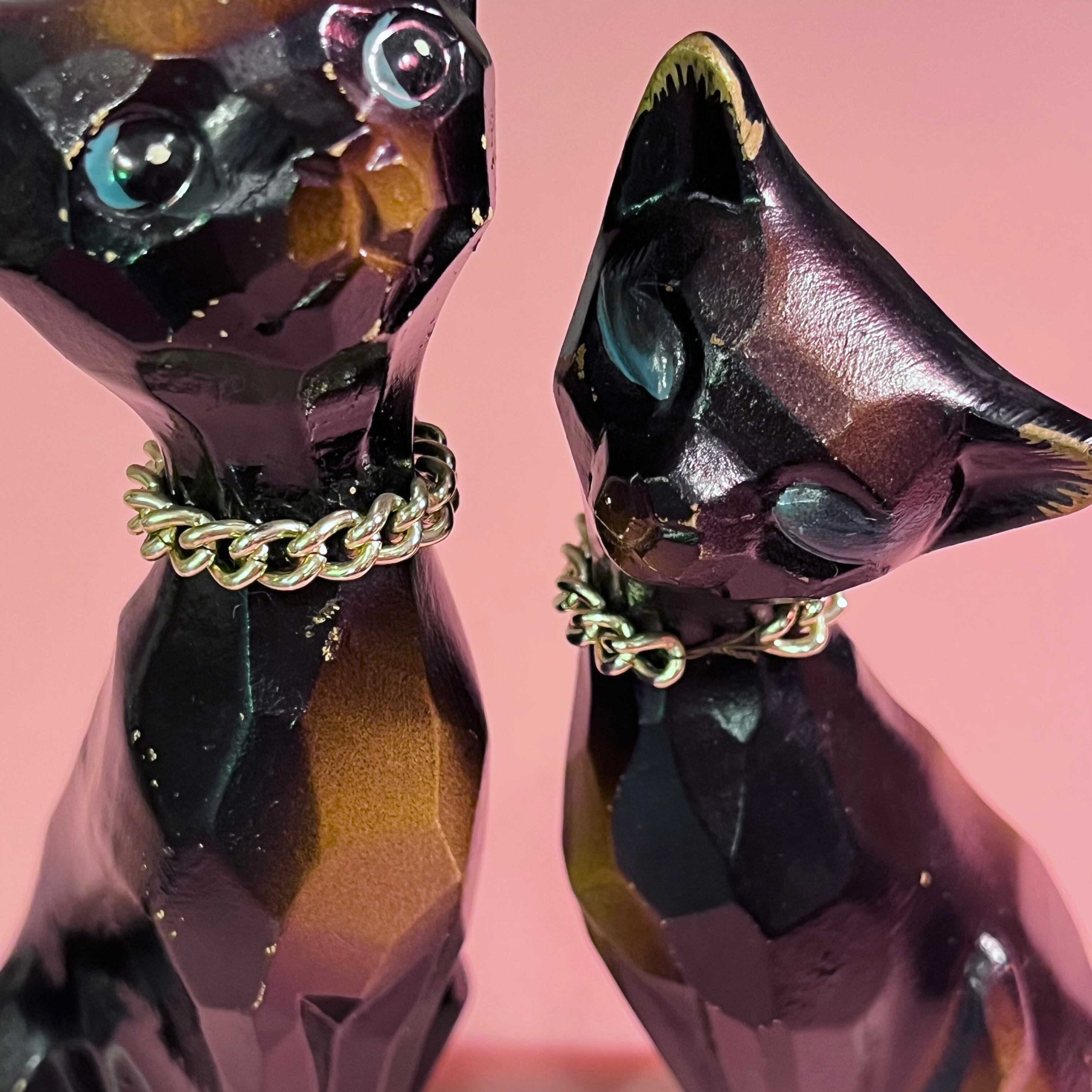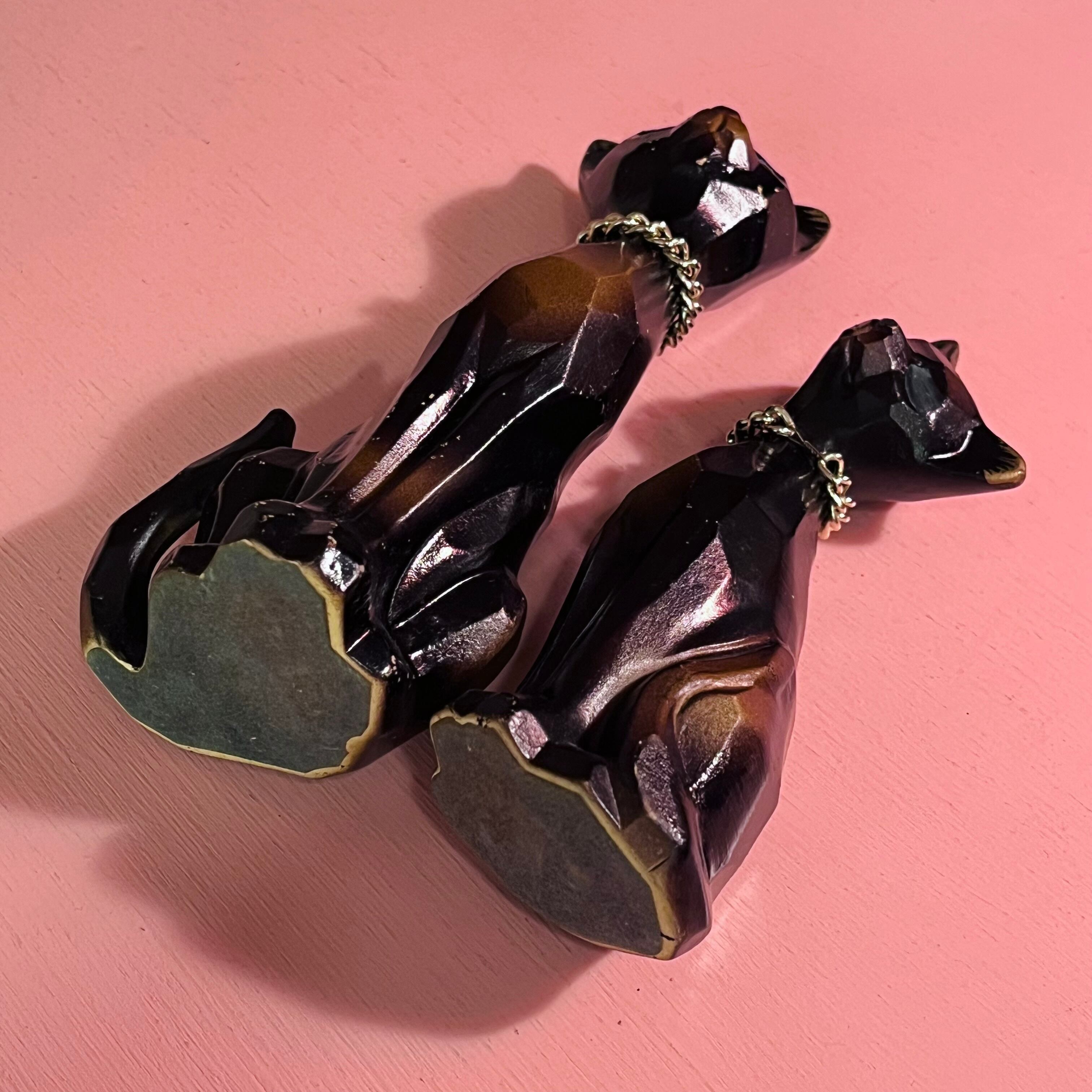 木彫り風陶器のペアネコ