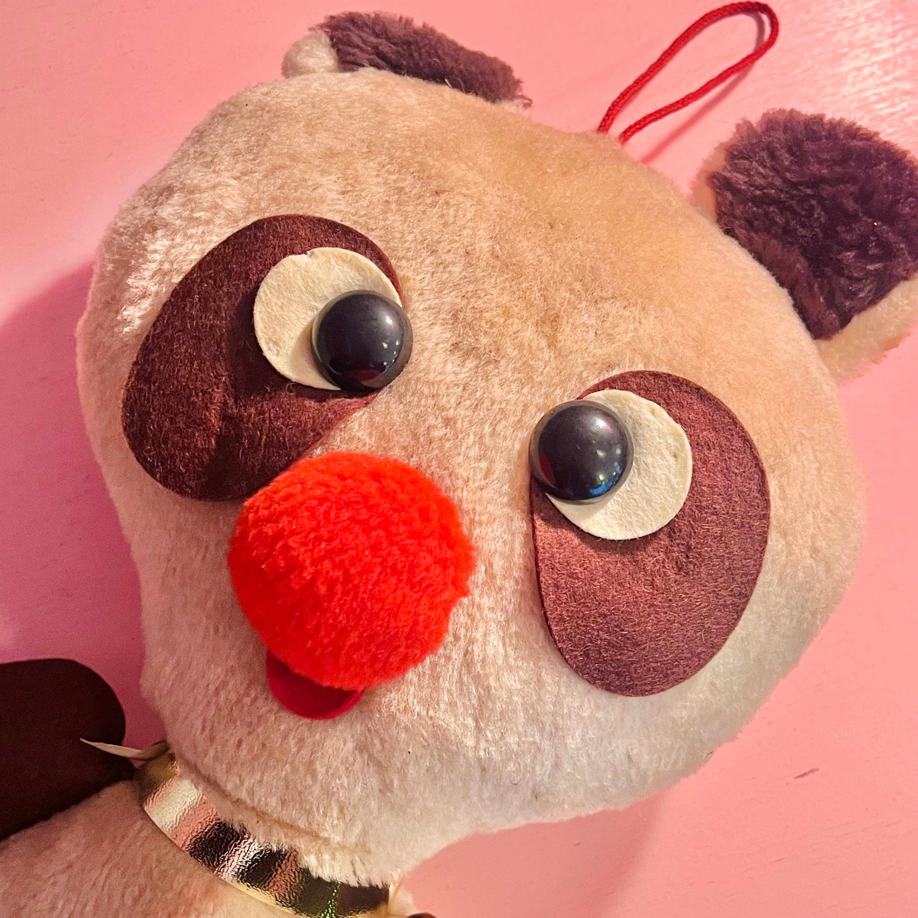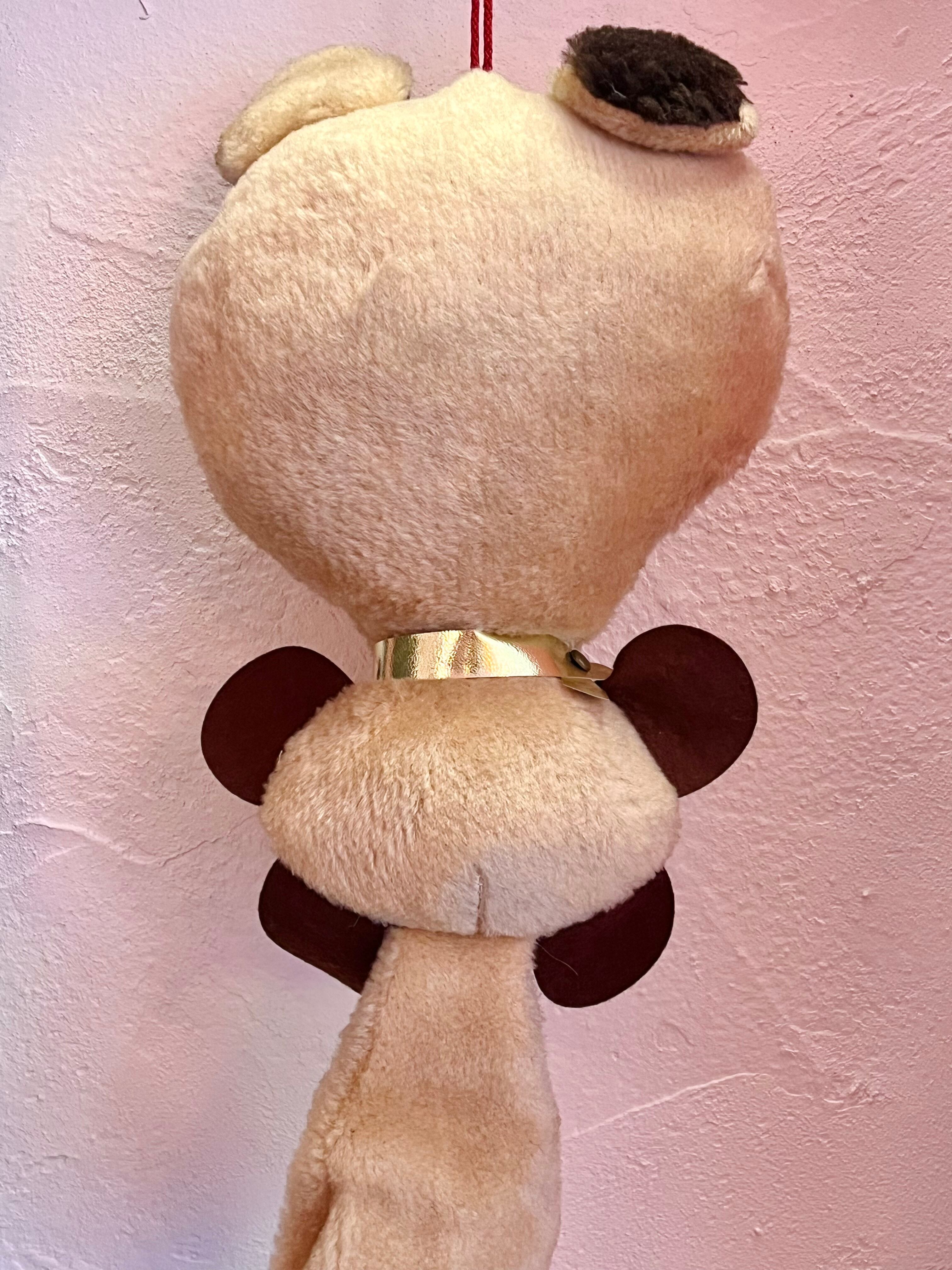 吊り下げたぬきのぬいぐるみ