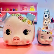 とても大きい豚の貯金箱。加藤工芸の製品です。