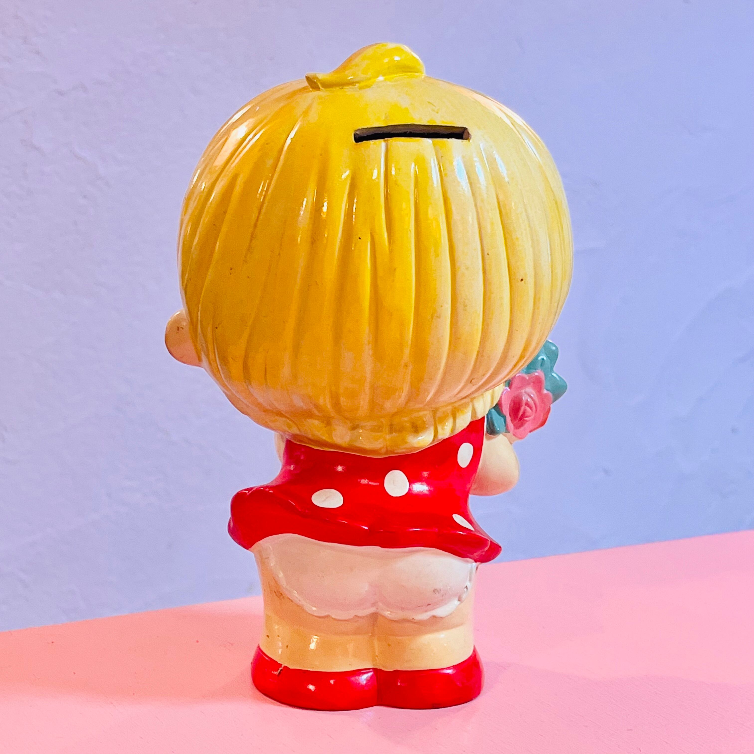 お花を持ちうっとりする姿が可愛い亜土ちゃんの陶器。