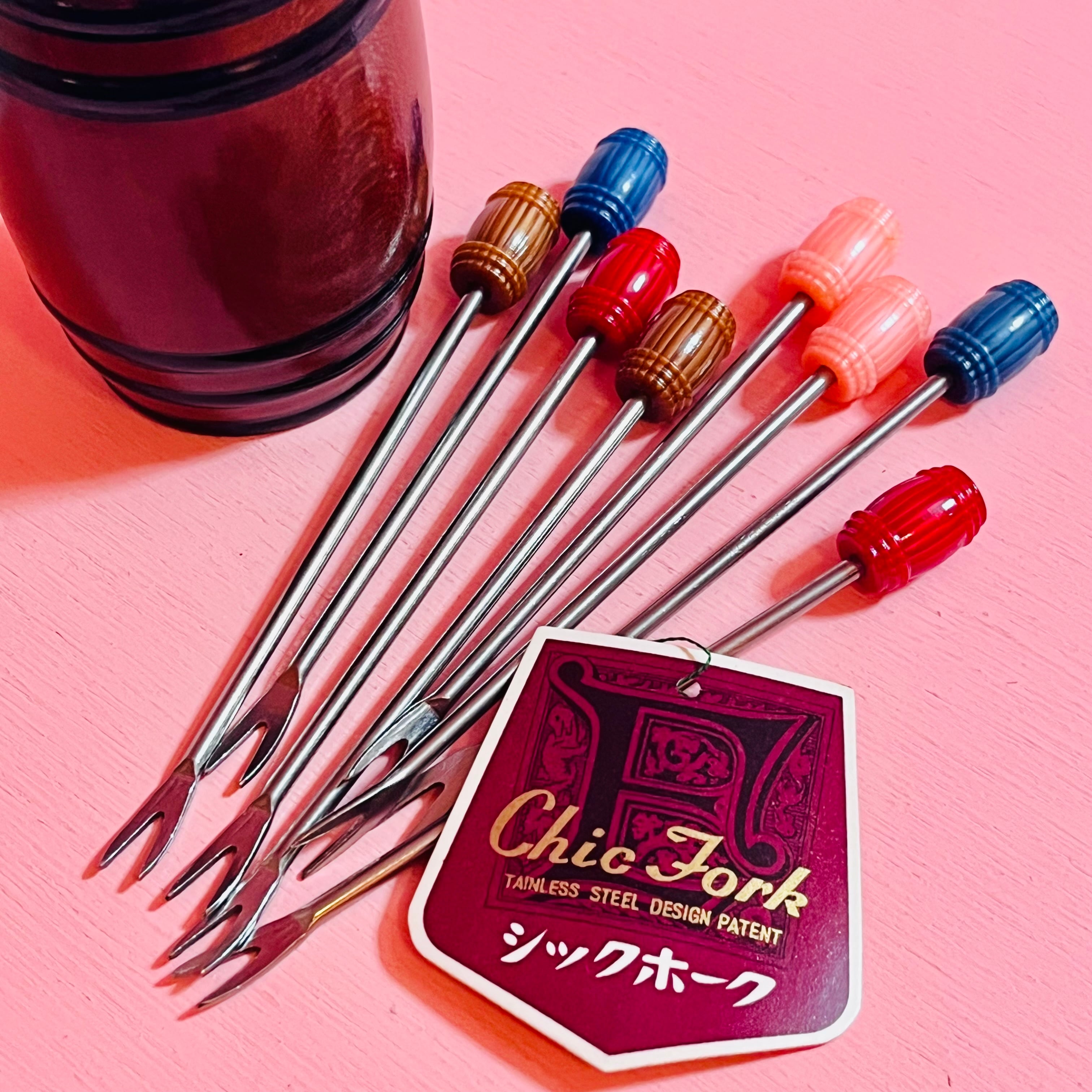 樽型のケースにミニフォークが8本入っています。飴のような可愛い樽のパーツはプラスチック製。