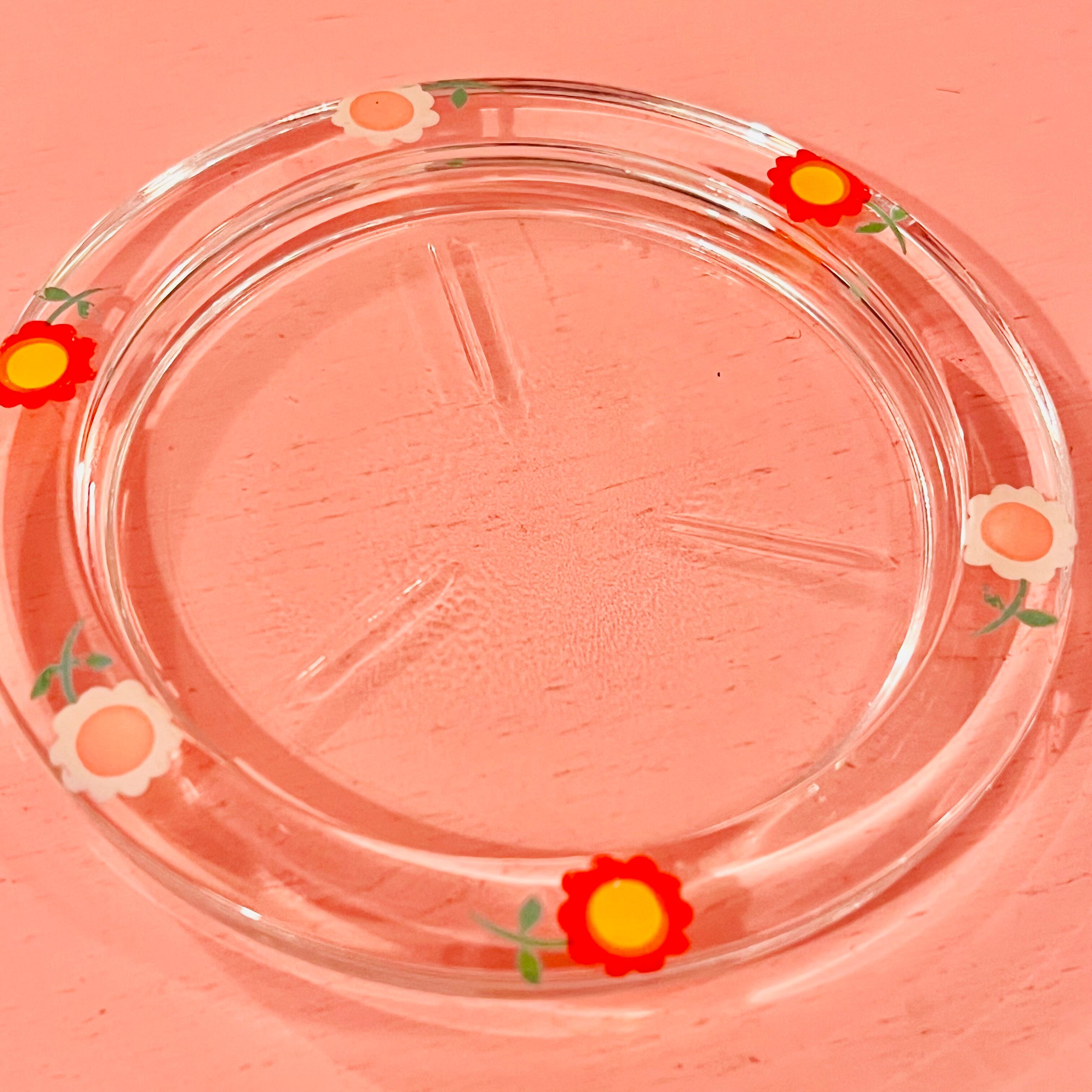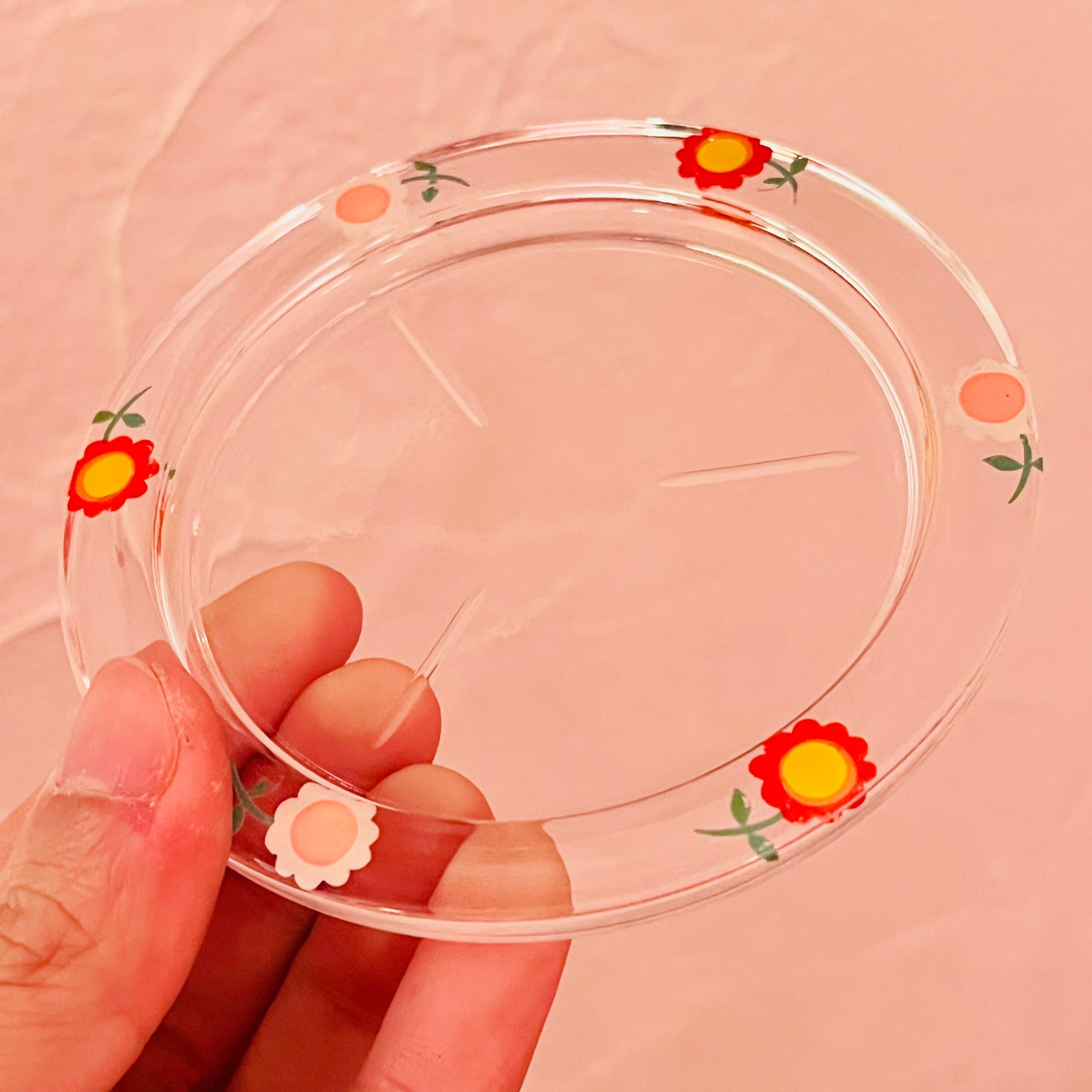 とてもキュートなガラス製花柄のコースターです。ガラスのコースターってだけでも可愛いのにお花柄ですよ!