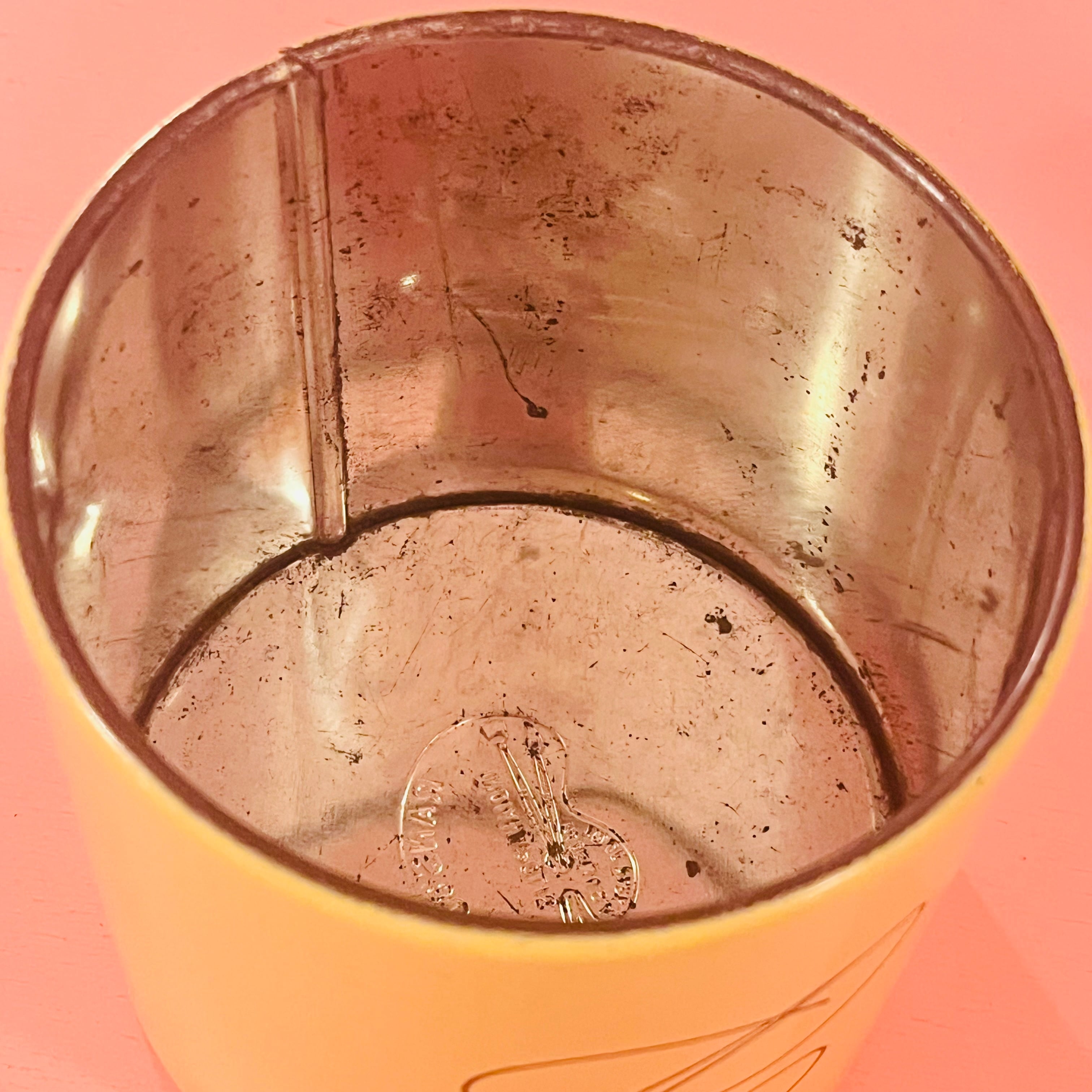 made in usa ランズバーグ社の紅茶入れ缶キャニスターです。綺麗なイエローと蓋のピンクゴールドのような色味が可愛いです。